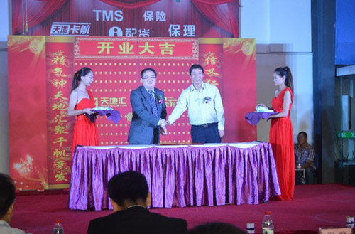 随后,在众多嘉宾的见证下,徐总和程总双方代表公司按下手印,共同达成精诚合作之意。接着何总和潘总推广的五大产品(园区专线联合业务管理系统、天地汇保险、天地汇保理、配货、天地卡航)将现场气氛一度掀至高潮。不仅在现场进行了保险授牌和签约仪式,还为此次签约客户准备了丰厚大礼。为了进一步使台下更多商户熟知该项业务,纪总对五大产品进行详细讲解。