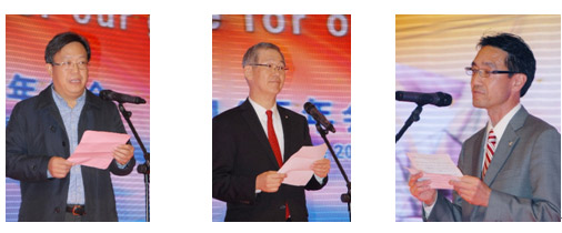 “骏马奔驰辞旧去,三阳开泰迎新来”。1月27日晚,以“携手共进,扬帆远航”为主题的亚邦颜料产业2014年年会在武进九洲喜来登酒店龙城厅隆重召开。东洋油墨集团东洋色材株式会社社长境裕宪,东洋油墨集团东洋色材公司常务董事、东洋亚邦董事长田村俊和,东洋油墨集团东洋贸易公司市场开发部部长田中洋一,东洋油墨集团东洋控股公司集团财务部秋山晓、经营部今西,珠海东洋科美化学有限公司总经理张廷玮,亚邦集团总经理杨建、监事长蒋国元、党总支副书记工会主席张展羽,宣城亚邦投资有限公司董事长张申林等受邀参加了此次年会。集团公司办公室、技术部等部门人员也受邀参会。亚邦颜料产业常州地区员工、各公司中层以上主要干部也同聚一堂。