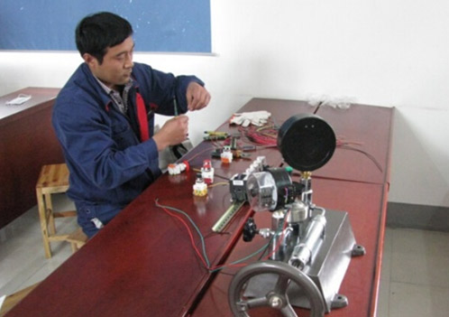 26日下午13时30分,生产条线电工技能比赛正式开始,技能比赛的主题是“滤机油压站电气控制柜”接线,分为画图和实际操作两部分,通过采用标准压力台模拟油泵、接触器、继电器、急停旋钮开关、指示灯、按钮开关等设备元器件进行组装,以实现对油压站进行手动、自动控制。参赛选手按自行设计图纸,进行接线调试,这对参赛选手是一次严峻的考验,尤其是接线调试环节,为了实现手动、自动控制均能达到要求,选手们需要连接约五十根线,任何一个常闭常开点接错,均会导致失败。比赛严格按照行业和工种技术标准进行,难度系数甚高。但参赛人员仍然本着岗位练兵、提升素质、相互切磋、共同提高的原则,紧张而又认真规范的完成每一步的操作,奋勇争先。