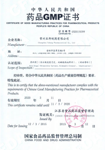 亚邦制药“枸椽酸西地那非”原料药品种获得2010版GMP证书