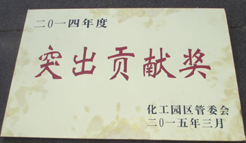 “突出贡献奖”是连云港化工产业园区授予园区内对经济发展作出特殊贡献企业的^高荣誉奖。染料连云港分公司已于2012年、2013年两次获此殊荣,3月18日在连云港化工产业园区管委会召开的表彰大会上,此奖项第三次花落染料连云港分公司。