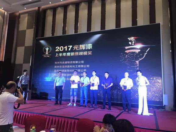 会议表彰了前5大规模经销商和前5位增量经销量,并颁发了奖牌和奖金。通过所有经销商的共同努力,公司销售业绩较去年同期有所增长。光辉水性漆体系通过5年时间的调整和磨合,已日趋完善。公司重点推介的水性调合漆、水性钢结构漆、水性工业漆等产品既顺应了市场发展,又是大家经济增长的突破点。会议希望所有经销商抓住水性漆机遇,在老市场、新市场竞争区域和环保要求高的上海、苏州、杭州区域开发更多新的客户,提高光辉漆市场占有率。