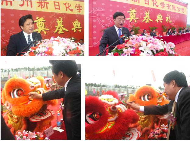 9时58分,主持人精彩盎然的开场白拉开了奠基仪式的帷幕。首先是澳门新阳集团总裁、常州新日化学有限公司董事长张文俊致欢迎词。张董对各位嘉宾的到来表示热烈的欢迎。常州新日化学有限公司是由澳门新阳集团投资创办的一家化学企业。注册资本4998万美元,总投资9998万美元,占地面积26.6万平方米。张董说新日化工一期拟建四个项目,预计固定资产投资约10亿元人民币,将于二00九年上半年起陆续建成,四个项目投产以后,将实现年销售收入45亿元。由于公司拟建项目有的是放热反应,有的是吸热反应,公司引入循环经济理念,通过内部热源转换,每年可节省20万吨标煤,创造的经济价值约1.5亿元。他说发展循环经济,创建节约型社会,是贯彻落实科学发展观的必然要求,体现了以人为本,可持续发展的理念,是我国全面建设小康社会的战略选择,符合当今世界的发展潮流。张董表示公司及其关联企业将强化产业链建设,加强产业关联性,提高资源配置效率。公司还将致力于规模化、集约化的经营方式,通过规模化来提高竞争力,通过集约化来进一步提高效益与效率。安全生产是企业发展的重要保障,张董说新日化工在项目建设过程中和投运后将高度重视安全生产,所有项目都将采用先进的DCS控制系统,建立多重联锁保护。公司也将严肃对待环境保护工作,投巨资建立完善环保处理装置,并确保可靠运行,达标排放。常州新日化学有限公司及其关联企业将致力于为社会作贡献,为股东创利益,为职工谋福利,力争到2011年时销售额突破100亿元。