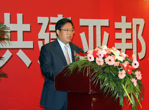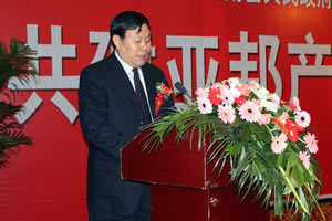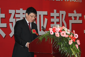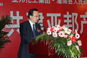 江苏省振兴苏北办公室副主任黄建东、常州市副市长高清、连云港市副市长徐开信分别代表省苏北办、常州市委市政府、连云港市委市政府向会议致辞,他们高度赞赏亚邦与灌南在七年合作中所取得的丰硕成果,一致希望和支持亚邦与灌南发挥各自的优势,扩大和加深合作,努力营造更加良好的合作环境,为政府和社会塑造沿海开发、南北协作、企业与政府合作双赢的典范,形成企业做大做强、地方政府和老百姓增效增收的理想局面。
