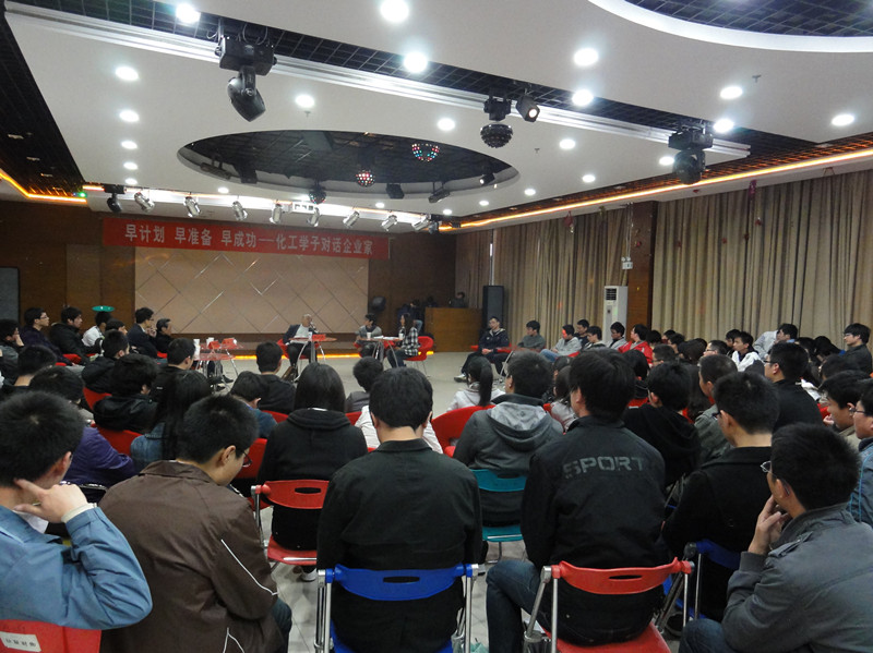 会谈结束后,张总在常大石油化工学院党委书记叶菁荫、副书记周刚的陪同下来到学生活动中心参加了主题为“早规划、早准备、早成功——化工学子对话企业家”的活动现场和数百名该院大三学生进行了面对面交谈。应学生们的要求张总首先坦诚的介绍了自身经历,然后和学生们分享了自己的成功的经验和工作理念,随后回答了学生们提出的问题。张总的连珠妙语使整个互动现场气氛活跃,笑声和掌声不断。