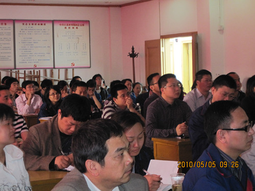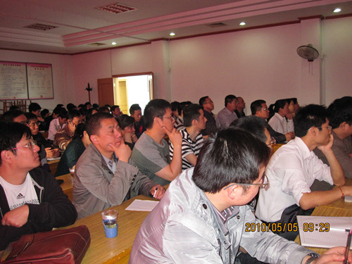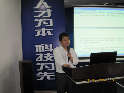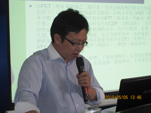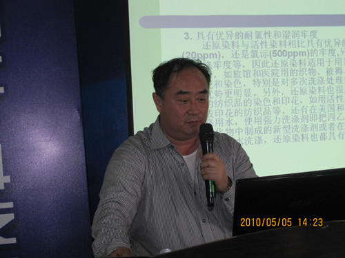 首先,由公司应用服务部部长徐杰讲解分散染料的知识。徐部长从分散染料的概述、分散染料的特征、涤纶纤维性质、染色加工、分散染料的色牢度等几个方面介绍了分散染料的知识,并就系列化产品推广的主导思想、建立多元化与特色化相结合的产品结构、目前我公司分散染料的品种性能进行了说明;其次,由技术服务部的吴永军讲解售后服务中常见的问题。吴工主要讲解了聚酯纤维在染色过程中常见的问题和分析、色差、色花及其控制、涤纶织物色花问题的修补与剥色;再次,应用服务部副部长
