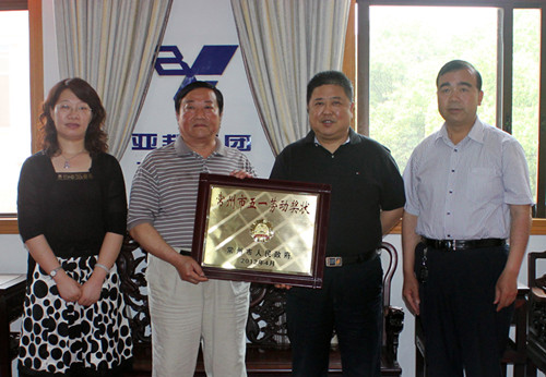 “五·一”节前夕,常州市人民政府为表彰全市各条战线上涌现出的先进集体和^个人,以激励全市广大职工奋发向上,建功立业,对48个单位和101名个人分别授予2011年度“常州市五一劳动奖状”和“常州市五一劳动奖章”荣誉称号。4月20日,常州市总工会在工人文化宫表彰了先进企业和个人。我集团公司获“常州市五一劳动奖状”。
