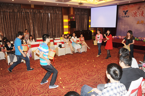 经过自我介绍、游戏、舞蹈几个环节,拉近了青年员工彼此的距离,“8分钟约会”恰是时候,男青年一般比较主动,选准意中人,坐到女青年身旁。有了前面环节的垫底,这样的“约会”自然也水到渠成,以窃窃私语的形式互诉各自的情况,纷纷互赠礼品更添情意。