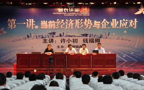 两个多小时的演讲,许董用他独特和诙谐的语言结合当前的经济现状让现场听众深受启发,不时报以爽朗的笑声和响亮的掌声。牛塘镇商会常务副会长钱福卿随后也作了主题演讲,牛塘镇党委副书记丁坤、牛塘镇党委统战委员夏惠芬等领导出席了开讲仪式,并倾听了两位会长的演讲。