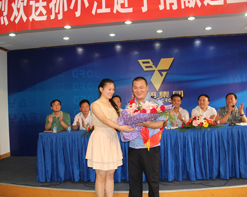 2007年进入亚邦的孙小江,是一名普通的保卫人员。阳光、开朗的他在工作岗位上一直默默无闻。2008年,当他看到许董“愿天下白血病人都能康复”的号召时,直接找到了办公室,报名参加干细胞捐献登记。今年4月9日,他接到了常州市红十字会的电话,他的干细胞与一位年仅20岁的大学生白血病患者配型成功。当问及他是否愿意捐献时,他简单干脆的说了两字“当然。”经过高配成功。