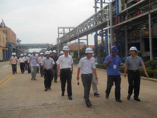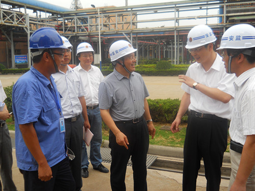 检查组人员下车以后,在副总经理孙斌的陪同下先来到消防中心,孙总介绍了公司的消防泵、泡沫泵等消防设施和墙边架子上陈列的各种消防应急器材。然后,检查组人员走在了公司东西门之间的一条宽阔的大道上,左面一排整齐高耸的是亚邦化学顺酐生产装置群和与其配套的废气蓄热焚烧吸收装置。孙总边走边向大家作介绍:为了净化空气,公司于2010年投资四千多万建成了五套废气蓄热焚烧吸收装置,尾气吸收经去年一年的正常运行已基本稳定,周围空气环境得到了明显的改观。路边繁茂的绿化就是无言的见证。在改善环境的同时,还为公司创造了一笔可观的经济效益。该装置除了能产生30多吨优质蒸汽,兼有尾气吸收和节约能源两个功能以外,还有操作简单化、自动化的优点。随后检查组一行来到了顺酐一、二期DCS控制室,介绍了废气蓄热焚烧吸收装置(RTO)的操作平台。孙总在电脑操作显示屏边给大家讲解了RTO吸收原理、操作方式等基本概况。