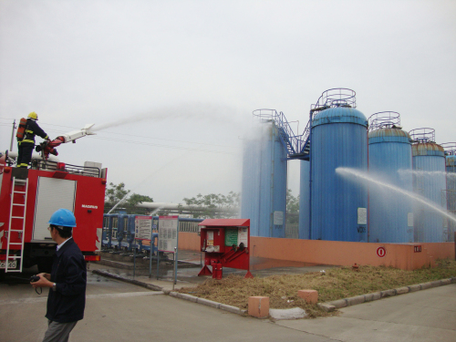 为普及消防安全宣传工作,提高化工企业工人的作战能力,常州市新北区消防支队于9月14日 下午,组织4辆消防车和20多名装备齐全的消防官兵,到亚邦齐晖医药公司进行模拟消防演练。演习中,消防战士以其高效精湛的技能,短时间处理了危化原料泄漏及展示了灭火过程,体现出其较强的组织能力和专业的技术水平。