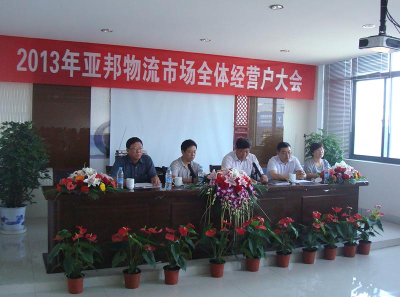 为了使亚邦物流市场健康、稳定发展,充分发挥全体经营户爱场如家的积极性,10月10日上午9点,亚邦物流市场总经理张惠兴在日用品公司办公大楼二楼主持召开了2013年亚邦物流市场全体经营户大会,副总经理蒋政、张运达,部长翁介斌、主任王琴妹及近100名经营户出席了此次会议。