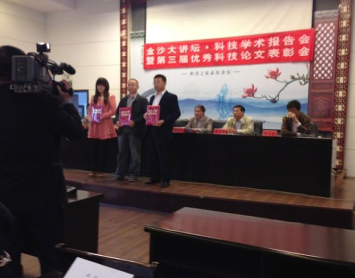 为进一步弘扬科学精神、普及科学知识,同时也为了激励先进、鼓励创新,10月18日上午,金坛市人民政府、金坛市科学技术协会在金坛博物馆大礼堂举行了“金沙大讲坛•科技学术报告会”暨第三届^科技论文表彰会。金坛市各党工委代表、市科协常委、各镇区科协秘书长和获奖论文作者及社会各界群众参加了报告会。会议由金坛市科协主席王浩明主持。会上,金坛市政府办副主任艾兆林宣读了对金坛市第三届自然科学^科技论文的表彰决定,并为获奖作者颁发了荣誉证书。