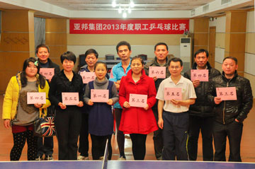 特等奖:佘 洁(安徽亚邦)、一等奖:王宏信(安徽亚邦)、张 回(安徽亚邦常州分公司)、二等奖:周坚彪(安徽亚邦)、缪小清(恒隆农药)、周斌(友邦净水)三等奖:高 进(亚邦信息科技)、张 超(安徽亚邦常州分公司)、崔志慧(安徽亚邦)、张骏遥(东洋亚邦颜料) | |