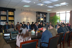 首先,万部长向各位领导汇报了公司基本概况、业态运营及未来发展规划。接着,潘总重点介绍了亚邦物流正在打造的由九大功能版块集聚的物流平台生态系统(即城市配送物流、专业市场、三方物流、零担专线、电商物流、货运信息中心、智能停车场、司机之家、物流文化与传媒)。潘总表示:近期由亚邦物流投资建造的江苏亚邦医药物流中心日用品平台项目已于11月5日开工,预计2014年6月投入使用。虽具备了一些相关功能设备,但总体还不配套和完善。这是一项任重而道远的工程,希望在座的相关领导多多关注和大力支持,促使亚邦物流进一步做大做强。刘局长仔细聆听工作汇报后询问了相关问题,包括配载自有车辆数量及车辆注册信息等。他强调货物配载一定要遵循安全、准点的原则。潘总表示赞同并就日用品平台项目施工过程中遇到的难题进行汇报:1、沿312国道东面配载车辆无主道口,进出需要绕道行驶,延长了配送路程,请示能否开辟一条路口与312国道连接;2、西侧道路即东宝路东段拐角处在建信息大厅,路面至关重要,希望相关部门能及时把此路段修复完善。刘局长就潘总提出的二大问题进行耐心解答:他们会针对这些问题与公路部门积极探讨交流,希望亚邦物流配合有关部门做好勘察工作,去实地察看是否适宜解决。这些都要依据路边相邻距离和周边设施条件量力而行。
