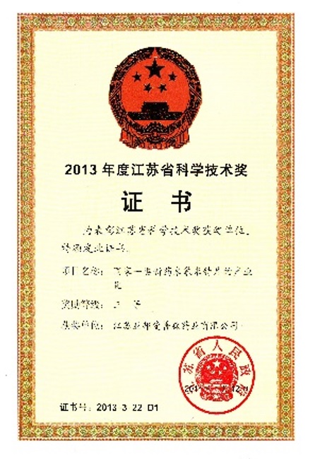 爱普森药业科技成果荣获2013年度江苏省科学技术奖